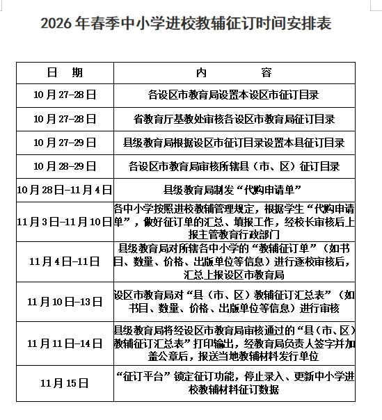 根据《南安市教育局关于做好2026年春季中小学进校教辅材料征订管理工作的通知》文件要求,为规范我校进校教辅材料征订管理工作,保障学生和家长合法权益,经学校教务处...…