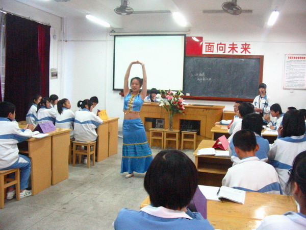 参与活动教师观摩了李夏莲老师执教的初二历史《万方乐奏有于阗》一课,并围绕 “转变教学方式,提高学习能力”的活动主题进行深入研讨。大家认为本节课学生能通过小组学习的方式,分工合作、平等协商、齐心协力完成团队任务。各学习小组按族源变迁、历史任务、风俗习惯、服饰特点重要节日和艺术文化等不同角度搜集资料,并采取演讲、幻灯片、歌唱、舞蹈多种形式展示研究性学习成果。本节活动课在《爱我中华》的歌声中结束,让参与师生体会到了视觉、听觉的享受,充分发挥教师主导、学生主体的作用,取得了较好的课堂实效性。