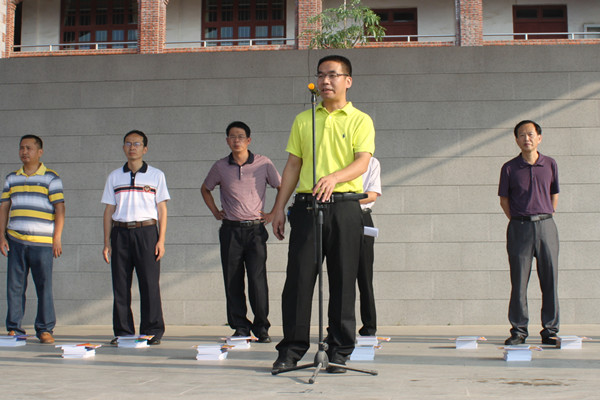 开学典礼在庄严的国歌声中拉开帷幕,政教保卫处戴煌城主任主持了开学典礼。首先,戴荣辉副校长宣读了学校关于表彰2013-2014学年度学校“三好生”、“优秀学生干部”的决定,全体行政为为受表彰的同学代表颁发了荣誉证书和奖品。