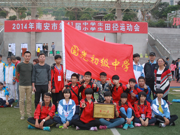 11月6日—8日,由李洋榕、陈建炜等15名同学组成的我校代表队参加了在实验中学举行的南安市第41届中学生田径运动会,比赛中,全体教练员和队员吃苦耐劳、顽强拼搏,顶风冒雨、克服困难,充分展示了国初人敢为人先、追求卓越的品质。最终以总分218分、领先第二名30多分的较大优势,连续第五年获得了初中甲组团体总分第一名的优异成绩,我校洪雅红老师还获得了“优秀教练员”的荣誉称号,特此向全校师生报喜!