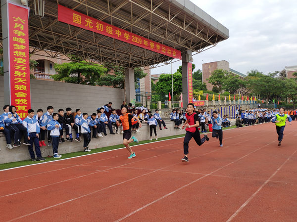 又是一年春来到,奋勇逐梦正当时!3月16日上午,经过一天半紧张激烈的角逐,国光初级中学2019年春季运动会在圆满地完成各项赛程后落下帷幕。本届运动会总裁判长黄胜利老师宣布各年级团体总分前六名的班级,学校领导出席闭幕式并为获奖班级颁奖。政教保卫处戴煌城主任致闭幕词。闭幕式由政教保卫处黄鸿池副主任主持。