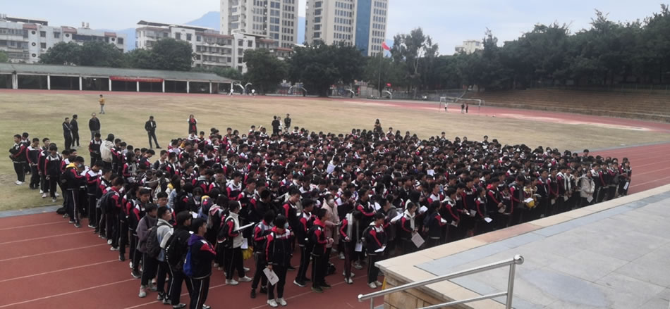 2021年12月22日下午,高二年全体学生、年段领导组成员及全体班主任在大操场举行第二次月考的质量分析会。