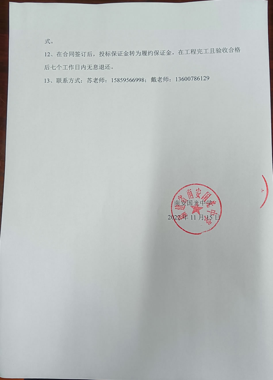 国光中学2022年秋季工程建设、零星修缮、物资采购规划项目公示