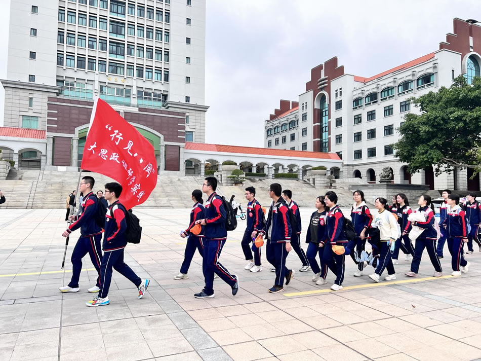为全面贯彻党的二十大精神,深入落实《教育部等十部门关于印发(全面推进“大思政课”建设的工作方案>的通知》(教社科〔2022〕3号)要求,积极推进大思政课研学实践活动,培根铸魂,推进思政课内涵式发展,推动“争先创优”活动的深入开展,经南安市委宣传部、南安市教育局统筹协调,4月1日,我校选派高二年47位优秀师生代表受邀参加厦门大学“行见八闽”大思政课研学实践活动。