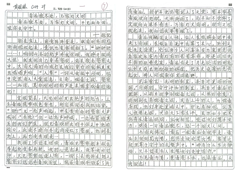 在禁毒征文比赛中,学生们以“珍爱生命,远离毒品”为主题,用文字表达了对毒品危害的深刻认识。他们通过真实的案例、生动的描写和深刻的反思,展示了毒品对个人、家庭和社会的巨大破坏力。这些作品不仅具有教育意义,也展示了学生们的才华和创意。