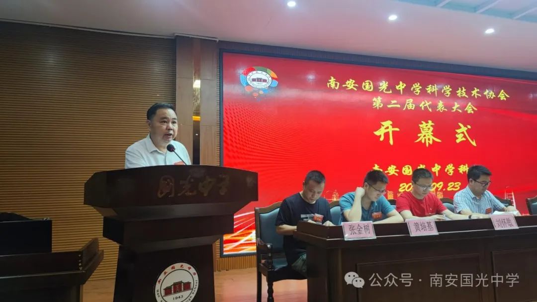 大会在雄壮的国歌声中开幕。李俊松校长代表学校致开幕词。他向大会的召开表示热烈的祝贺,向辛勤工作在科技教育战线上的师生们致以崇高的敬意!他表示,南安国光中学科学技术协会自成立以来,始终秉持“探索科学、创新实践”的宗旨,致力于培养具有创新精神和实践能力的科技人才,在全体师生的共同努力下,取得了显著的成绩,为学校的科技教育事业发展做出了积极贡献。他强调,站在新的历史起点上,我们要继续坚持创新、务实、开放、包容的工作方针,深入学习贯彻党的二十大精神和习近平总书记关于中小学科学教育的重要指示精神,做好科学教育加法,厚植基础研究人才和拔尖创新人才的培养土壤,一体化推进教育、科技、人才高质量发展,进一步加强科技创新教育体系建设,推动学校科技教育事业再上新台阶。