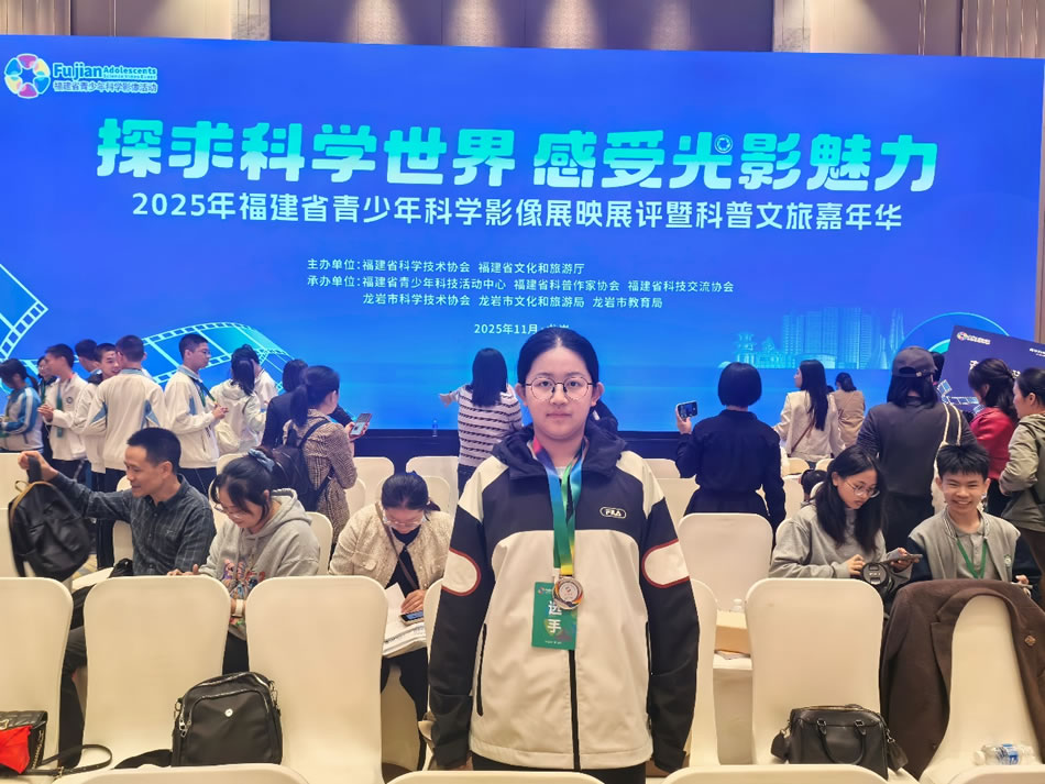 本次现场展映活动由福建省科学技术协会、福建省文化和旅游厅联合主办,龙岩市承办,黄翊同学经现场技能测试、展映问辩等环节,获得了该奖项。