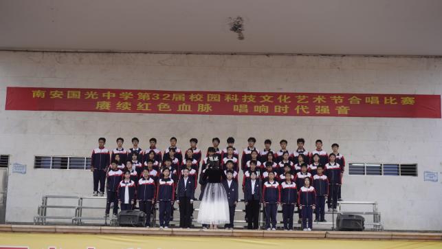 为厚植爱国情怀,传承红色精神血脉,2025年12月24日,国光中学初二年“青春心向党,红歌颂华章”红歌合唱比赛在光前园大操场顺利举办。本次比赛是学校第32届科技文化艺术节的重要活动,全体师生齐聚现场,用嘹亮歌声抒发爱国热忱,展现新时代少年的昂扬风貌。