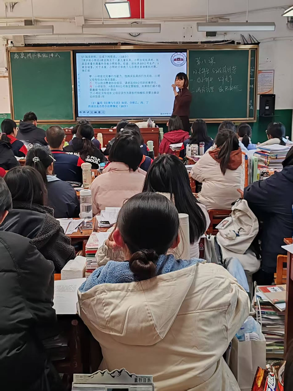 政治科课堂注重情境与真题融合,戴巧玲老师以劳动合同保障视频导入,渗透跨模块知识,助力学生融会贯通;陈瑞华老师依托福建高考真题,归纳知识体系并精讲解题思路。泉州市教科院政治教研员林跃明老师建议创设多元情境、加强学法指导与变式训练,南安市教师进修学校高中政治教研员陈燕霞老师强调课堂需突出重难点、避免面面俱到。