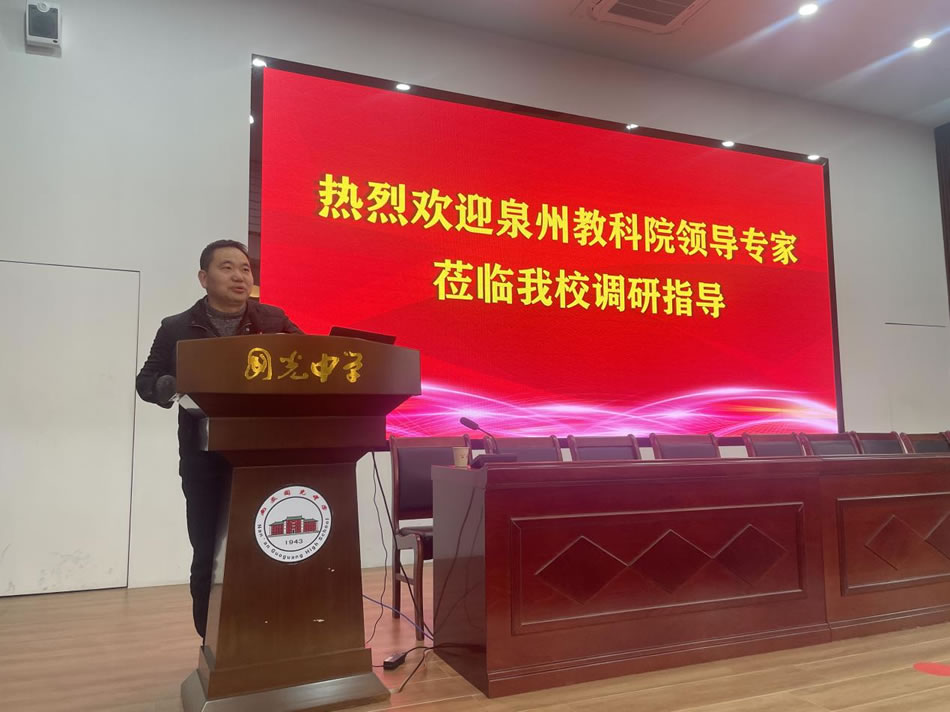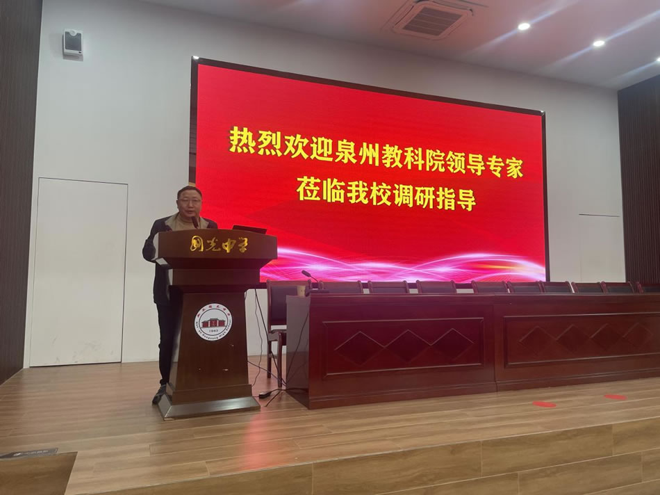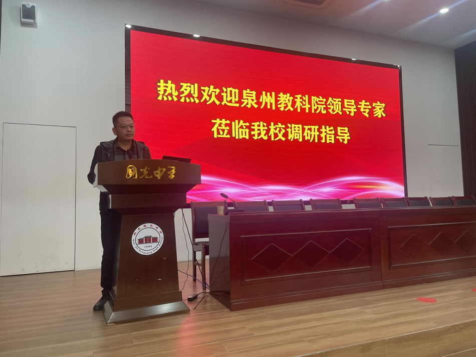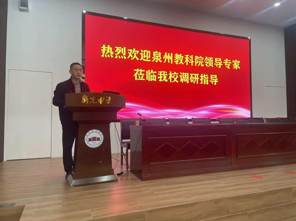 为深入贯彻习近平总书记关于教育的重要论述和党的二十届三中全会精神,落实教育部《县域普通高中振兴行动计划》及省市“深学争优、敢为争先、实干争效”行动部署,精准把握2026届高考备考方向,优化备考策略,1月15日,泉州市教育科学研究院陈森林主任带领各学科教研员莅临国光中学,开展高三教学专项调研与视导活动。南安市教育局、南安市教师进修学校相关领导、国光中学校长李俊松及全体行政、高三毕业班教师全程参与此次活动。
