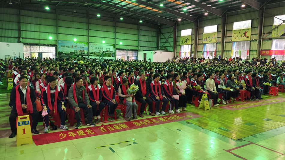学生代表李铂涛同学发出了属于00后的时代强音。他深情回望了在国光中学一千多个日夜的求学历程,从清晨朗朗书声到深夜挑灯夜战,从成绩起伏的困惑到拨云见日的顿悟。他坦言,接下来的97天将是“最深刻的修行”,号召同学们以笔为剑,以梦为马,“无论站在山顶还是谷底,都要坚信未来属于勇敢的人”,用踏实的脚步丈量通往梦想的距离。