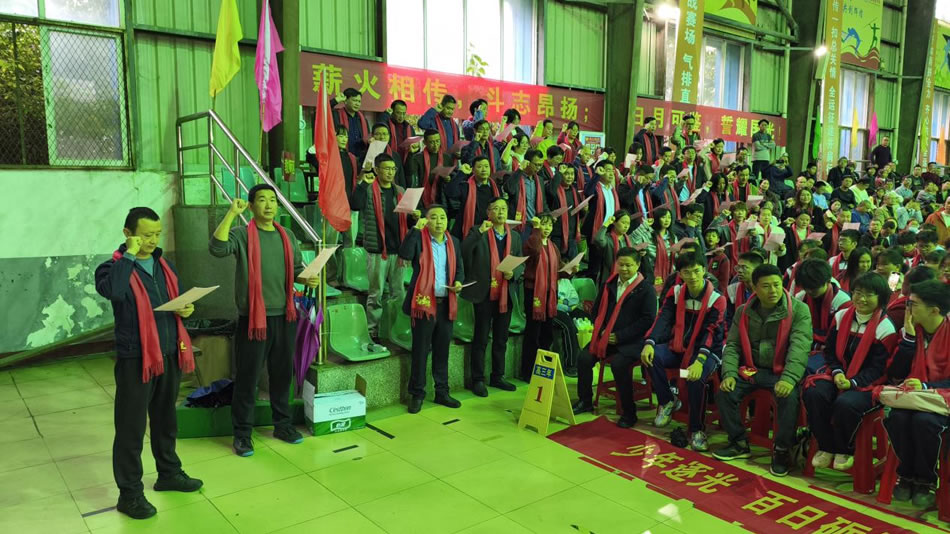 在陈建福老师的领誓下,全体高三教师郑重宣誓:“请同学们放心,我们必当精讲巧练,靶向领航;请家长们放心,我们必当倾心育英,锻造栋梁……”老师们目光坚定,誓言恳切,传递出与学子们同舟共济、保驾护航的坚定信念。