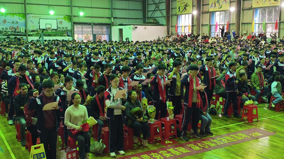 在师生宣誓环节,誓言声浪一浪高过一浪。在学生代表苏墨涵同学的领誓下,全体高三学子高举右拳,以青春的名义庄严宣誓:“用智慧浇灌理想,誓不负父母殷切期望;用汗水铸就锋芒,誓不负恩师谆谆嘱托……”誓言铿锵,响遏行云,彰显了国光学子必胜的决心。