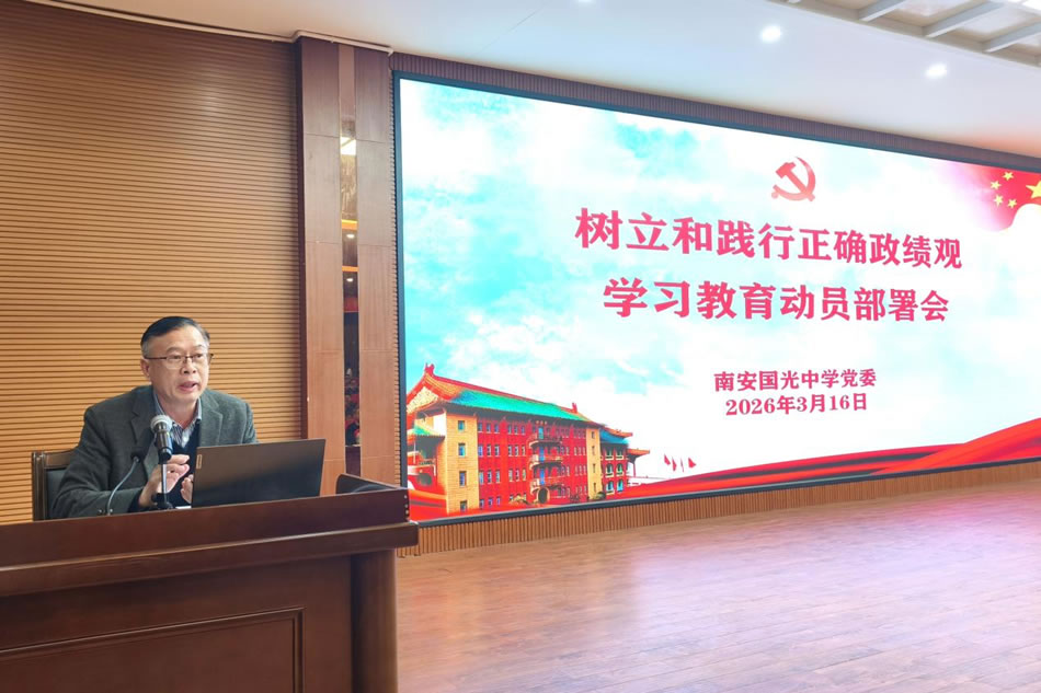 会议深入学习贯彻习近平总书记关于树立和践行正确政绩观的重要指示精神,认真落实中央、省委、泉州市委、南安市委及南安市教育系统有关会议部署要求,对全校开展学习教育进行动员安排。